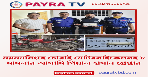 ময়মনসিংহে চোরাই মোটরসাইকেলসহ ৮ মামলার আসামি পিয়াল হাসান গ্রেপ্তার