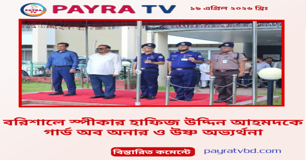 বরিশালে স্পীকার হাফিজ উদ্দিন আহমদকে গার্ড অব অনার ও উষ্ণ অভ্যর্থনা