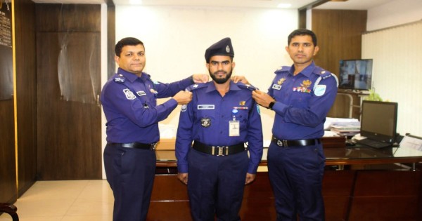 বিভাগীয় পদোন্নতি প্রাপ্ত পুলিশ সদস্যকে র্যাংক ব্যাজ পরিধান!