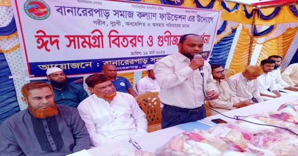 জামালপুরের বানারেরপাড় সমাজকল্যাণ ফাউন্ডেশনের ঈদ সামগ্রী বিতরণ ও গুণীজন সংবর্ধনা