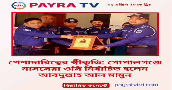 পেশাদারিত্বের স্বীকৃতি: গোপালগঞ্জে মাসসেরা ওসি নির্বাচিত হলেন আবদুল্লাহ আল মামুন