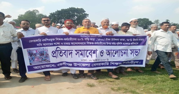 বকশীগঞ্জে বেসরকারি শিক্ষকদের তিন দফা দাবি আদায়ে বিক্ষোভ মিছিল